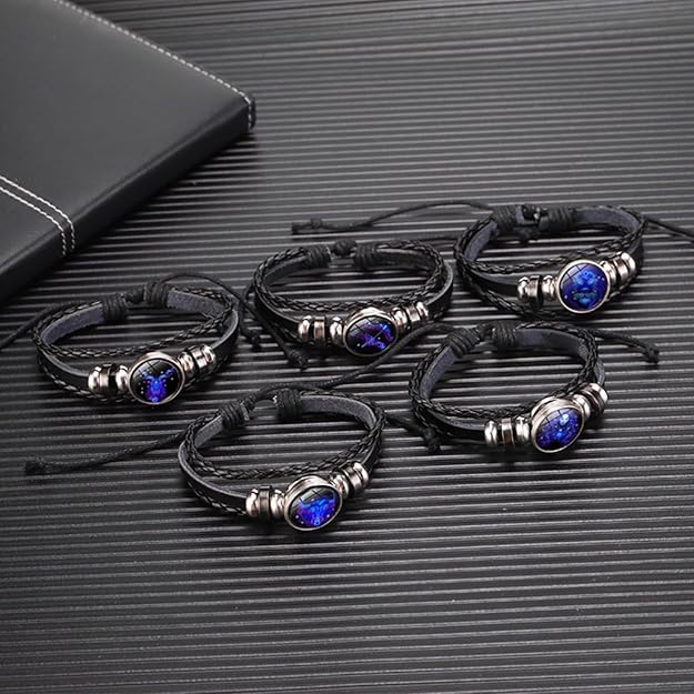 Multilayer Constellation Zodiac Leather Bracelet Vintage Black Leather Bracelet